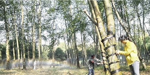 11月22日,江西省分宜縣中國林科院亞熱帶林業實驗中心樹木園內,技術人員在查看霍山米斛的生長情況。 袁建兵攝