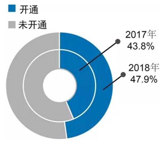 《報(bào)告》對(duì)中央企業(yè)海外社交媒體布局情況進(jìn)行了統(tǒng)計(jì),截至2018年底,96家中央企業(yè)海外社交媒體平臺(tái)(Facebook、Twitter、YouTube、Instagram)的整體開通率為47.9%,共46家中央企業(yè)開通278個(gè)賬號(hào)。與2017年的42家中央企業(yè)相比,2018年社交媒體平臺(tái)的開通率增長(zhǎng)4.1%,新增4家企業(yè)。其中,2018年中央企業(yè)在Facebook的開通率居四大境外社交平臺(tái)首位,高達(dá)38.5%,共37家中央企業(yè)開通118個(gè)賬號(hào)。(見圖2、3)