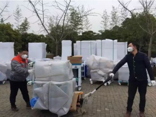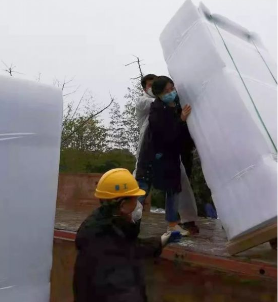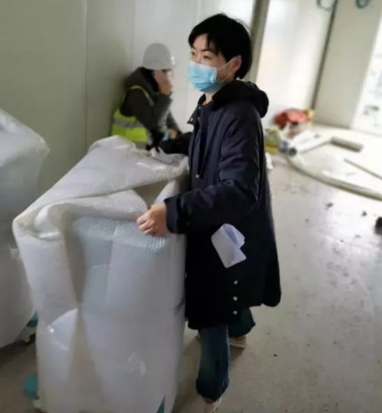 國藥衛(wèi)勤公司質(zhì)量部負(fù)責(zé)人葉麗娟得知醫(yī)院急需工作人員后,放棄休假,主動(dòng)請纓從安徽老家開車返回武漢抗疫一線,并在醫(yī)院現(xiàn)場組織九人的工作團(tuán)隊(duì)。他們中有有青年志愿者,有貨車司機(jī),有裝修工人,甚至連環(huán)衛(wèi)工人都參與到裝卸和搬運(yùn)的工作中。他們不辭辛苦,不計(jì)報(bào)酬,在庫房和醫(yī)院間連續(xù)往返工作24個(gè)小時(shí),徹夜裝卸搬運(yùn)貨物五百余件。任務(wù)緊急,人力不足,工地現(xiàn)場沒有叉車等運(yùn)輸工具,甚至連道路都尚未鋪好。在這種環(huán)境下,大家硬是肩挑手扛,用人力一步步把上百斤的醫(yī)療物資扛到病房。