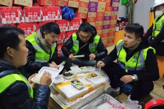圖3:中國(guó)建筑青年突擊隊(duì)帶頭攻堅(jiān)克難及工地上的年夜飯