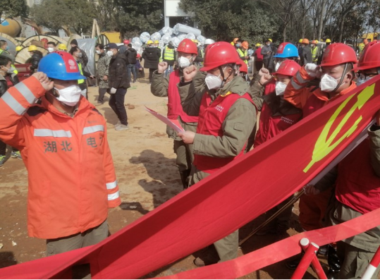 “堅決完成建設任務,為抗擊疫情做出貢獻!”1月25日在黨員突擊隊授旗儀式上,中建三局火神山項目經理張正林帶著128名工人黨員在黨旗下宣誓,組建黨員突擊隊,將不忘初心、牢記使命,發揮黨員模范帶頭作用,勇擔重任,確保按時保質保量完成任務。