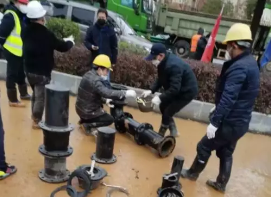 新興際華新興鑄管武漢公司將240米球墨鑄鐵管及108種管件配備送至工地,并開始管道安裝作業。