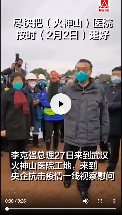 李克強總理來到火神山醫院,當總理問現場工作人員能完成任務嗎?現場所有人齊呼:能!!!保證完成任務!