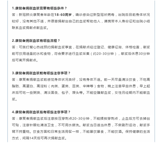 中國生物倡議新冠肺炎康復者捐獻血漿,捐獻條件包括“新冠肺炎康復者年齡在18-60周歲,確診感染過新型冠狀病毒,出院后目前身體狀況較好,沒有其他不適,并愿意捐獻出自己的血漿幫助他人”等內容。