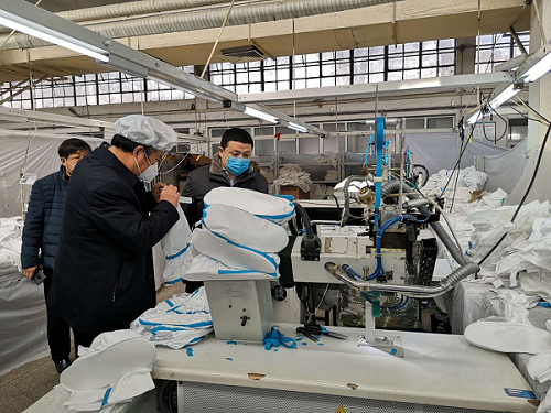 在生產(chǎn)設(shè)備保障方面,積極協(xié)調(diào)、調(diào)撥防護(hù)服關(guān)鍵生產(chǎn)設(shè)備壓條機(jī)。協(xié)調(diào)天津市有關(guān)部門開通綠色通道,確保生產(chǎn)設(shè)備用最短時間投入上產(chǎn),并在一天內(nèi)為企業(yè)提供了詳細(xì)的裝備清單、供貨商、聯(lián)系方式等信息,為企業(yè)順利上產(chǎn)提供了堅實保障。