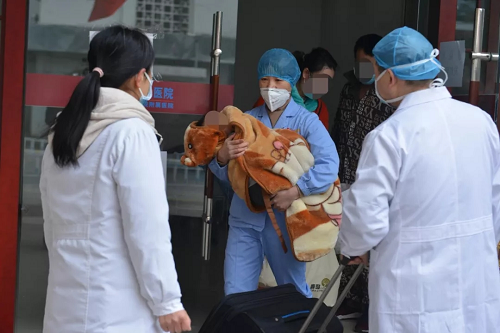 患兒媽媽已于2月8日治愈,為了照顧孩子沒有離開隔離病區,今天上午終于盼來寶寶治愈的好消息,母女倆一同出院回家。目前患兒爸爸仍在積極治療中。