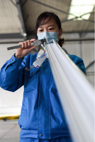 新華社照片,烏魯木齊,2020年2月22日 新疆烏魯木齊:防疫不松勁 復工干勁足 2月22日,在新疆海螺型材有限責任公司生產車間,工作人員檢驗產品質量。 連日來,新疆烏魯木齊部分企業在確保做好防疫工作的前提下,安全有序復工,復工企業主要以電力、熱力、食品、化工企業等急需物資重點企業以及生活保障企業為主。 新華社記者 丁磊 攝