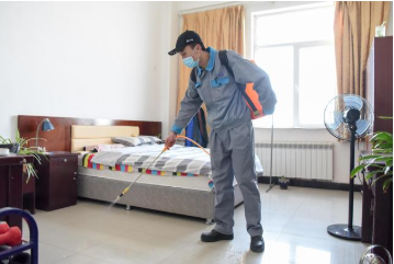 新華社照片,烏魯木齊,2020年2月22日 新疆烏魯木齊:防疫不松勁 復工干勁足 2月22日,在新疆海螺型材有限責任公司,工作人員對職工宿舍進行消毒作業。 連日來,新疆烏魯木齊部分企業在確保做好防疫工作的前提下,安全有序復工,復工企業主要以電力、熱力、食品、化工企業等急需物資重點企業以及生活保障企業為主。 新華社記者 丁磊 攝