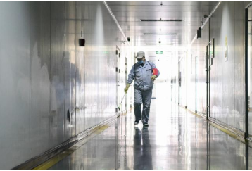 新華社照片,烏魯木齊,2020年2月22日 新疆烏魯木齊:防疫不松勁 復工干勁足 2月22日,在國藥集團新疆制藥有限公司,工作人員在綜合制劑車間進行消毒作業。 連日來,新疆烏魯木齊部分企業在確保做好防疫工作的前提下,安全有序復工,復工企業主要以電力、熱力、食品、化工企業等急需物資重點企業以及生活保障企業為主。 新華社記者 丁磊 攝