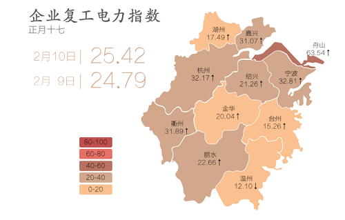 國網浙江電力全力推行電力大數據服務,運用營銷系統海量數據,建立算法,分析全省企業復工情況,根據企業歷史用電量情況、當日用電量情況等數據,精準對各個企業進行“畫像”,得出復工指數,動態監測、直觀反映當前企業的復工復產情況,解決繁瑣的逐級上報和疫情防控人手不足等難點,協助政府做好疫情防控及有序復工工作。該“企業復工電力指數”的推出尚屬國內首個。