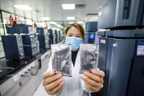根據中藥配方顆粒的制備工藝,“肺炎1號方”所含的每一種中藥經過水提取、濃縮和噴霧干燥,成了粉狀的提取物后,再進行混合干法制粒,最終得到的是已經包含了配方中所有中藥成分的顆粒。