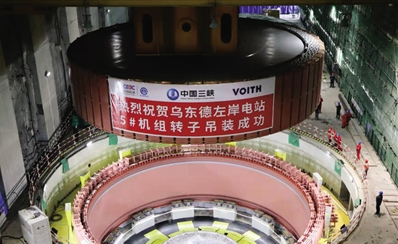近日,由中國能建葛洲壩集團承擔安裝施工任務的烏東德水電站左岸地下電站5號機組轉子成功吊裝。資料照片