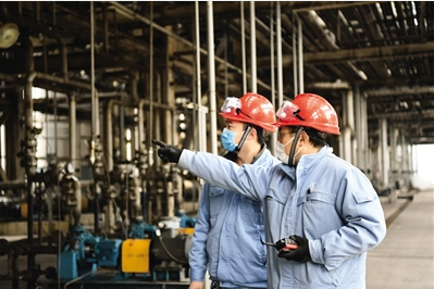 2月20日,在中國石化集團重慶川維化工有限公司,工作人員在生產線上巡檢。記者 唐奕 攝