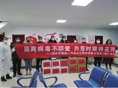 據了解,國大藥房一直關注著疫情防控形勢。在得知新體路街道抗擊疫情一線的工作人員缺少消毒藥品、防護物資的難題時,國大藥房主動伸出援手,從庫房中拿出5箱醫用酒精、5箱84消毒液和5盒防護手套,捐贈給新體路街道辦事處,助力疫情防控工作。