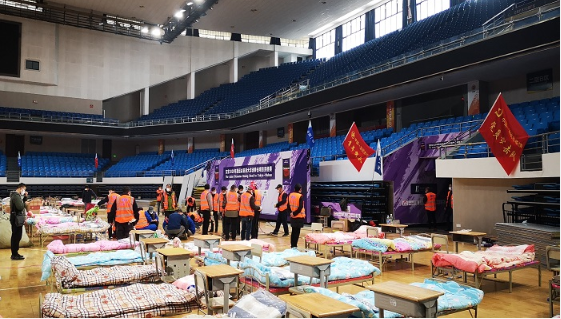 中國一冶突擊隊火速建設(shè)武漢洪山體育館“方艙醫(yī)院”。