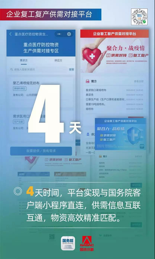 企業復工復產供需對接平臺,是為破解廣大企業復工復產過程中的物資供需不匹配、信息不對稱難題,由國務院國資委科創局、國資委新聞中心指導,國務院客戶端小程序接入并在疫情防控和復工復產服務專區開設入口,國網電商公司青年志愿者提供技術支持,為企業提供供需信息發布、貨源及服務信息展示、供求信息撮合對接等服務的公共服務平臺。