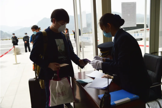 在出發(fā)現(xiàn)場,安檢、進出站、驗票、候車等環(huán)節(jié)都為復工人員開辟了綠色通道,旅客保持一定距離,避免人員聚集;進站前所有人員需展示健康碼并測量體溫;全體乘客均使用“團體旅客證”車票。
