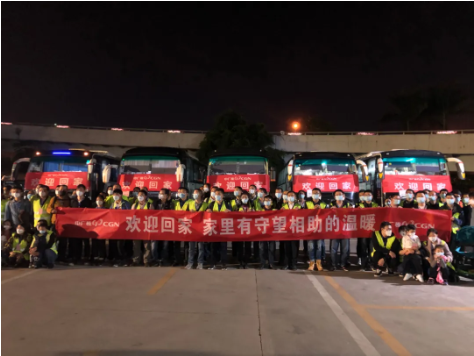除了跨越千里、風馳電掣、一次運送千百名職工的復工專列,還有數(shù)不勝數(shù)的返崗專車,以機動靈活的方式,穿梭在神州大地。