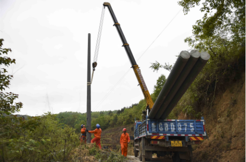 在貴州紫云縣松山街道同心村,電力施工人員全力加速建設,讓村民早日用上安全電、舒心電。陳娟 攝