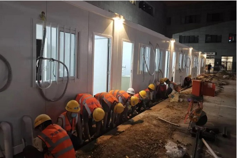 中建八局員工接力連軸施工,70個小時完成北京協和醫院核酸采樣方艙項目施工。