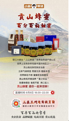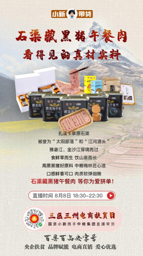 “百縣百品央字號”暨“小新帶貨”融媒體扶貧行動已經成功舉辦12場,而本場是首次主題專場活動,聚焦8家中央企業在“三區三州”的8個定點扶貧縣,旨在幫助“三區三州”貧困地區打開產品銷路、推廣特色品牌,同時講述中央企業定點扶貧的精準舉措和動人故事。