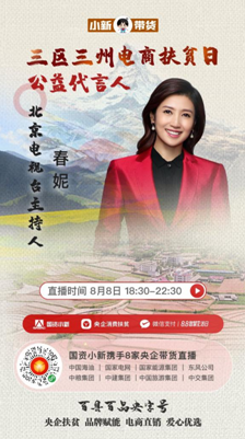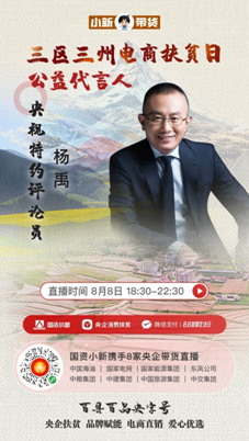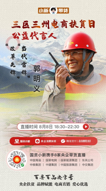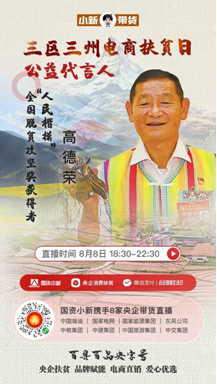 8月8日18:30至22:30,中國交建黨委常委、副總裁裴岷山,中國海油扶貧辦主任宋瑞林,國家電網扶貧辦主任張蓮瑛,國家能源集團戰略規劃部主任魏慎洪,東風公司扶貧辦副主任劉鵬,中糧可口可樂飲料有限公司黨委書記、CEO慶立軍,中建集團中建二局紀委書記鄧小林,中國旅游集團旅游服務有限公司董事、紀委書記胡志敏將走進“百縣百品央字號——‘三區三州’電商扶貧日”微信小程序直播間,帶來“三區三州”特產好物,講述中央企業定點扶貧的動人故事。
