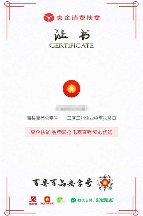 ▲網(wǎng)友在直播間下單后,小程序自動(dòng)生成“央企消費(fèi)扶貧電子證書”。