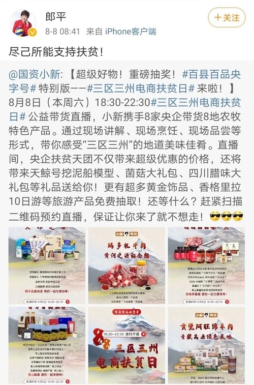 在“三區(qū)三州”地區(qū),國資委指導(dǎo)中央企業(yè)探索出了各具特色的扶貧路徑和模式。此次直播帶貨中詳細(xì)展示了中央企業(yè)行之有效的經(jīng)驗(yàn)和做法。