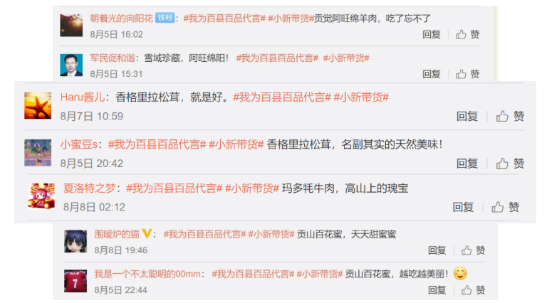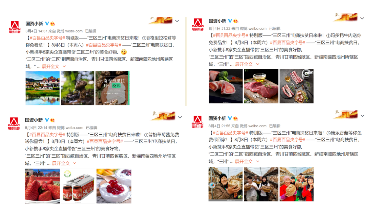 除了農(nóng)特產(chǎn)品,直播帶貨還創(chuàng)新加入圖片、視頻等元素,著重推介“三區(qū)三州”的旅游資源。“旅游搭臺,扶貧唱戲”,邊疆美景和風(fēng)土人情為此次直播帶貨增強(qiáng)了文化厚度,為“三區(qū)三州”塑造了“美食+美景”的雙重地區(qū)特色品牌。