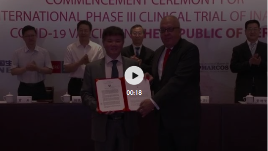 8月20日,國藥集團中國生物新冠滅活疫苗國際臨床試驗(Ⅲ期)秘魯共和國啟動儀式在京舉行。國藥集團中國生物新冠滅活疫苗獲得了秘魯衛生部國立衛生研究院頒發的Ⅲ期臨床試驗批件。這是繼6月23日國藥集團中國生物新冠滅活疫苗獲得阿聯酋臨床試驗批件以來,中國疫苗展開國際合作的又一重要進展。