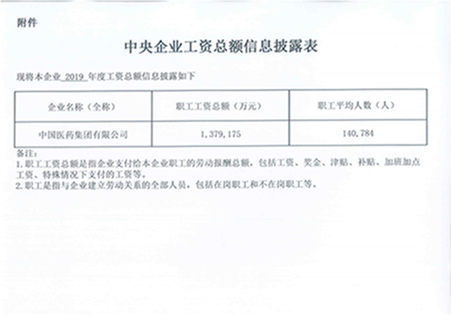 國藥集團2019年度工資總額信息披露表